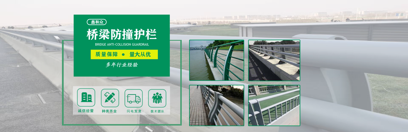 山東鑫和眾金屬制品有限公司主要產品有防撞護欄,橋梁護欄,道路護欄,河道護欄,不銹鋼護欄等護欄。提供設計方案,一站式定制,包您滿意價格優惠,歡迎來電咨詢!    公司常年從事銷售護欄防撞護欄,橋梁護欄,道路護欄,河道護欄,不銹鋼護欄,橋梁鋼護欄,河道燈光護欄等。產品廣泛應用于橋梁、河道、旅游景區、道路、公路、公園、小區、景觀、道路防撞等領域。    公司產品均采用優質不銹鋼材料,符合相關標準。各種型號不銹鋼復合管及護欄,質量嚴格把控。產品強度高、耐腐蝕、焊接牢固、抗沖擊、性能好,防撞護欄結構簡單、美觀實用大方。     歡迎前來訂購!...